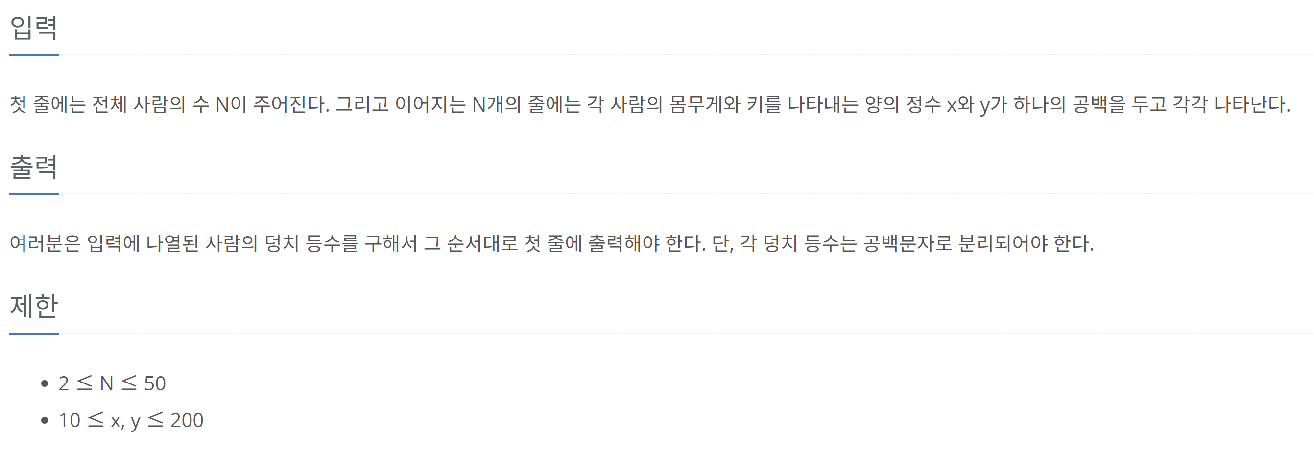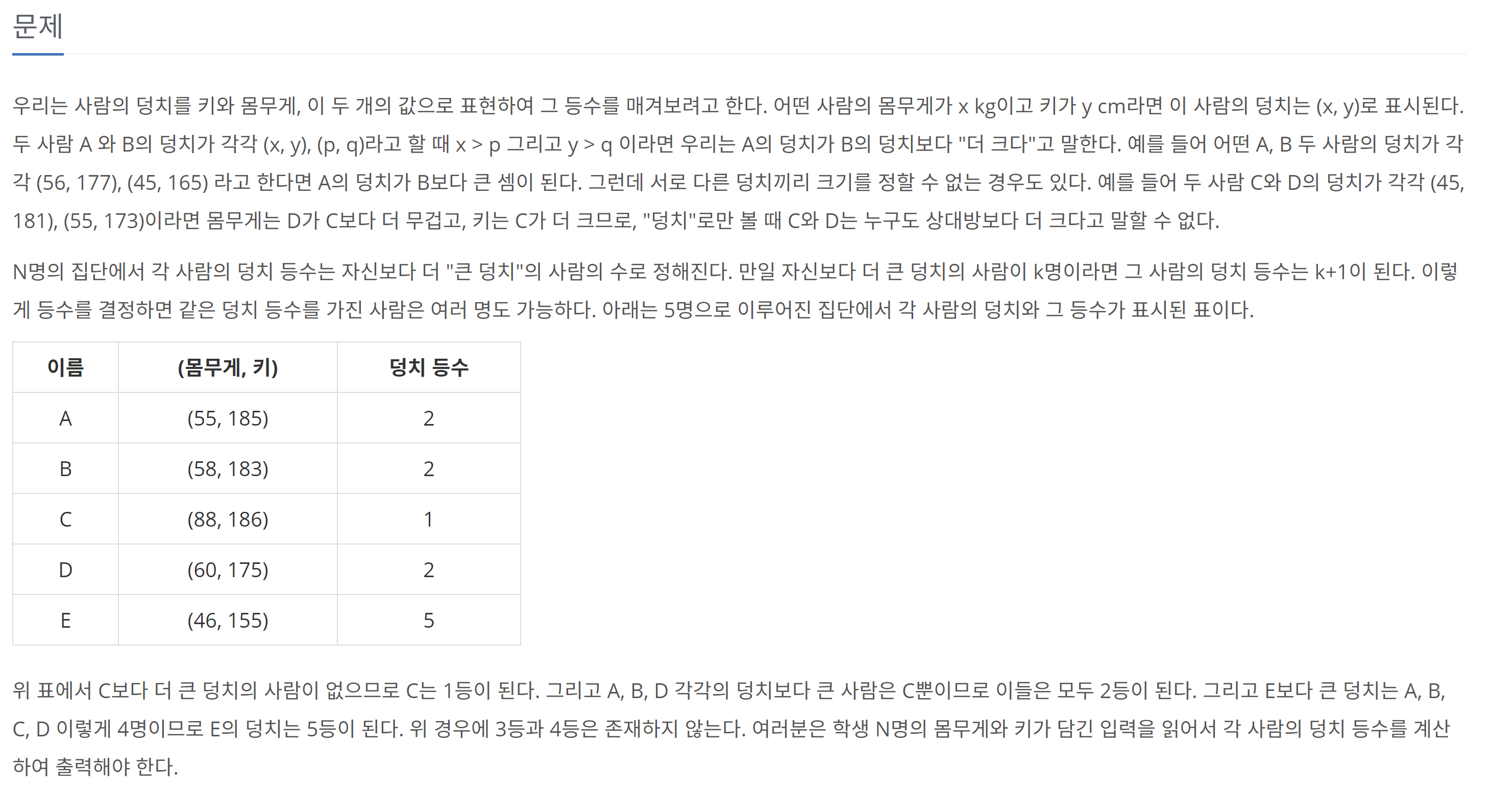 문제 링크: www.acmicpc.net/problem/7568
